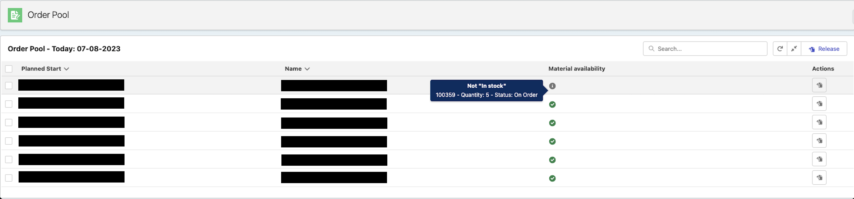 A better user interface to display material availability in the Order Pool. The user can now immediately see which materials are not yet fully in stock before releasing a production order.
