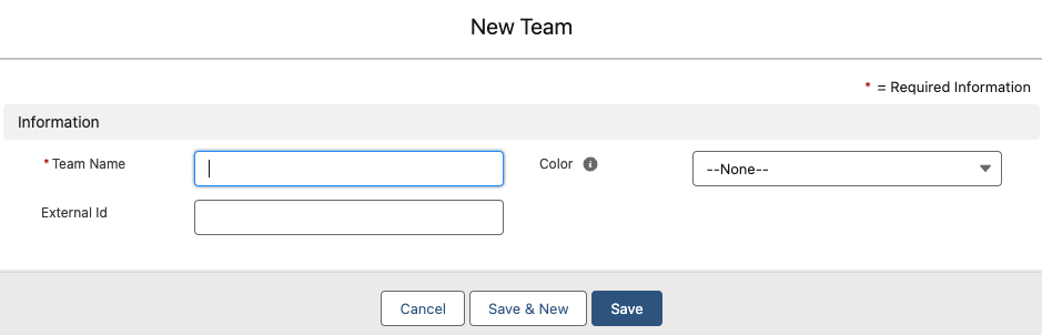 Fill in the Name of the Team and copy the name value into the External Id field.