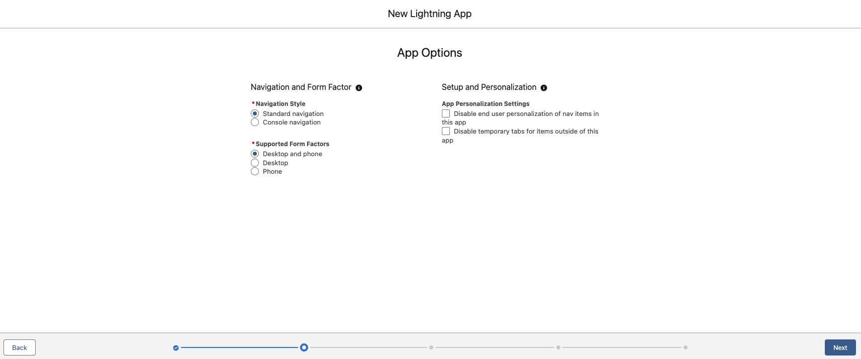 When you want to create a new app, click on “New Lightning App” and follow below steps.